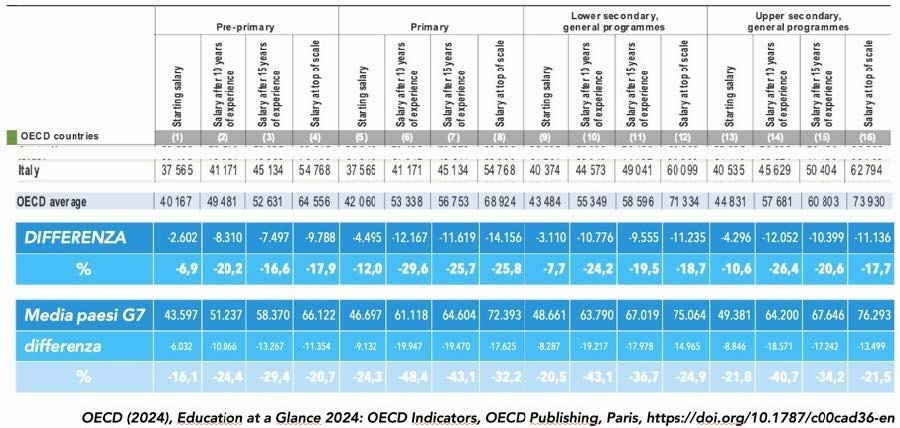 Nella sostanza, vengono confermati i risultati della ricerca Euridyce «Teachers’ and school heads’ salaries and allowances in Europe» del 2025: l’Italia resta il paese in cui il personale percepisce le più basse retribuzioni mentre i dirigenti hanno le più alte.