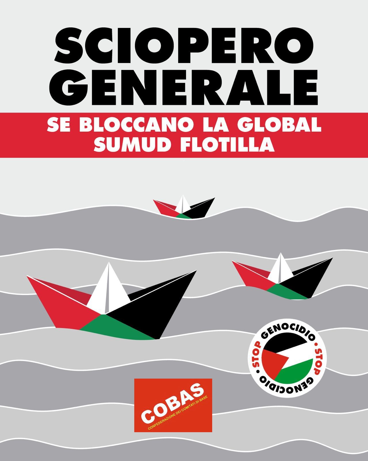 Care e cari, come sapete la Global Sumod Flottilla si sta avvicinando alle coste di Gaza e nelle prossime ore è previsto l’intervento della marina militare israeliana. Appena ciò avverrà, i Cobas, assieme ad altri sindacati, proclameranno lo SCIOPERO GENERALE, che a questo punto è molto probabile sarà VENERDÌ 3. Questa data è congeniale anche …